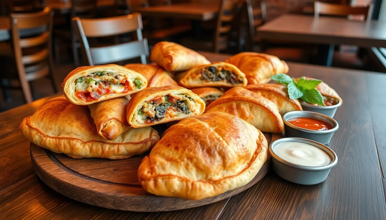 Dipping sauces enhance every order, adding flavor and excitement. Guests can choose from a range of sauces, including spicy marinara and creamy garlic aioli. These accompaniments elevate the enjoyment of the calzones, making each bite memorable.